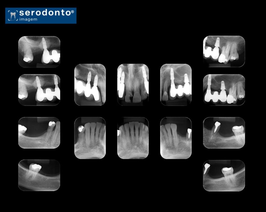 O exame periapical completo envolve a captura de múltiplas imagens periapicais, proporcionando uma visão abrangente da saúde bucal.