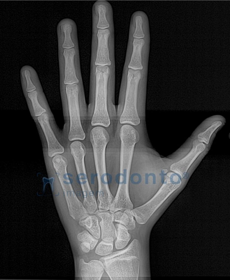 A radiografia carpal é utilizada para avaliar a idade óssea, auxiliando no planejamento de tratamentos ortodônticos e cirúrgicos.